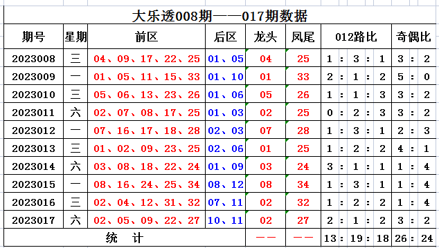 大乐透前区别析: