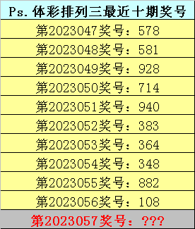 开奖纪念:体彩胪列三第2023056期奖号为:108,类型:组六。