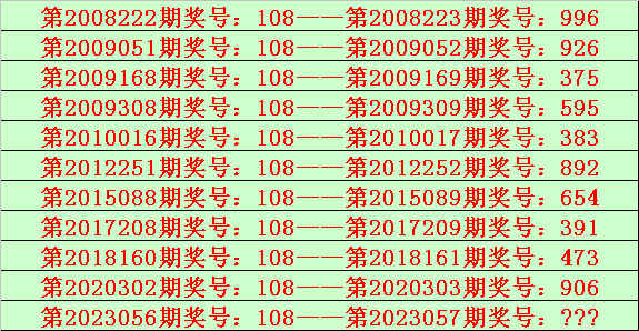 胪列三第2023056期开出奖号108,该号码直选类型历史上出现了11次,前10次开出之后期下期奖号为:996、926、375、595、383、892、654、391、473、906,见下表: