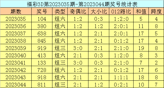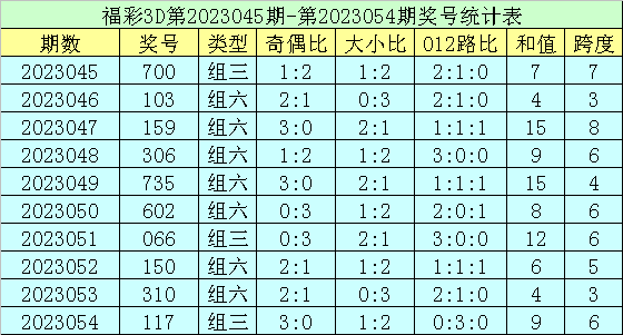 上期转头:福彩3D第2023054期开奖号码为117,组选类型为组三皇冠曲奇,奇偶比为3:0,大小比为1:2。